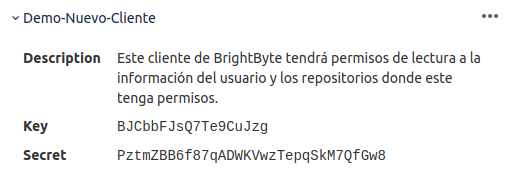 Es importante recalcar que BrightByte solo necesita permisos de lectura leer información del usuario y repositorios donde participa y tiene permisos. En ningún momento es posible que el sistema acceda al código fuente, ya que la autenticación para acceder al código siempre la debe de hacer el usuario con su cuenta propia en el proveedor (e.g. Bitbucket, GitHub, GitLab).
