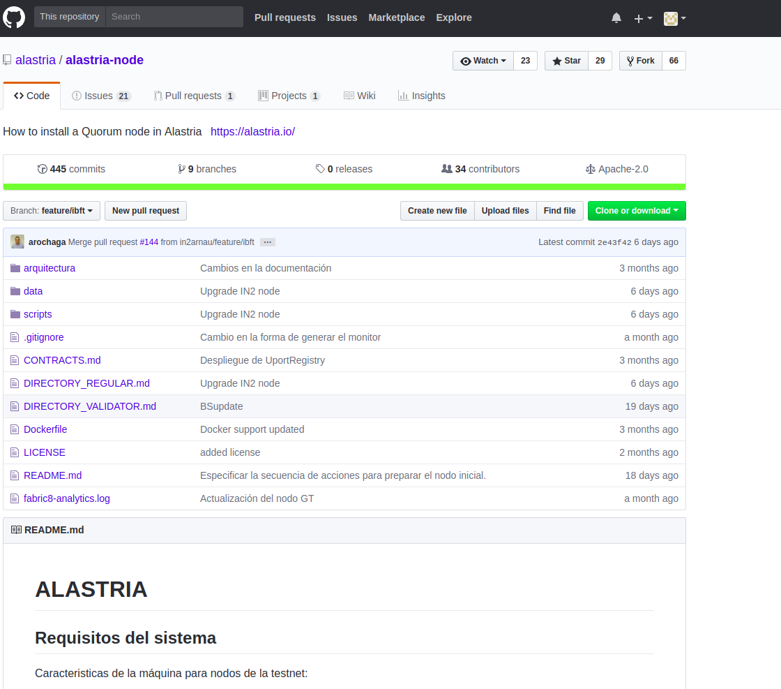La asociación Alastria facilita los diferentes repositorios en GitHub con numerosa documentación para las herramientas existentes en la red. En el caso de esta entrada, estamos interesados en la creación de un nodo de Alastria.