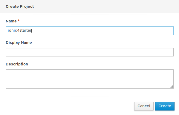 En primer lugar creamos un proyecto pulsando sobre Home -> Projects -> Create Project e introduciendo el nombre del proyecto, como por ejemplo «ionic4starter».