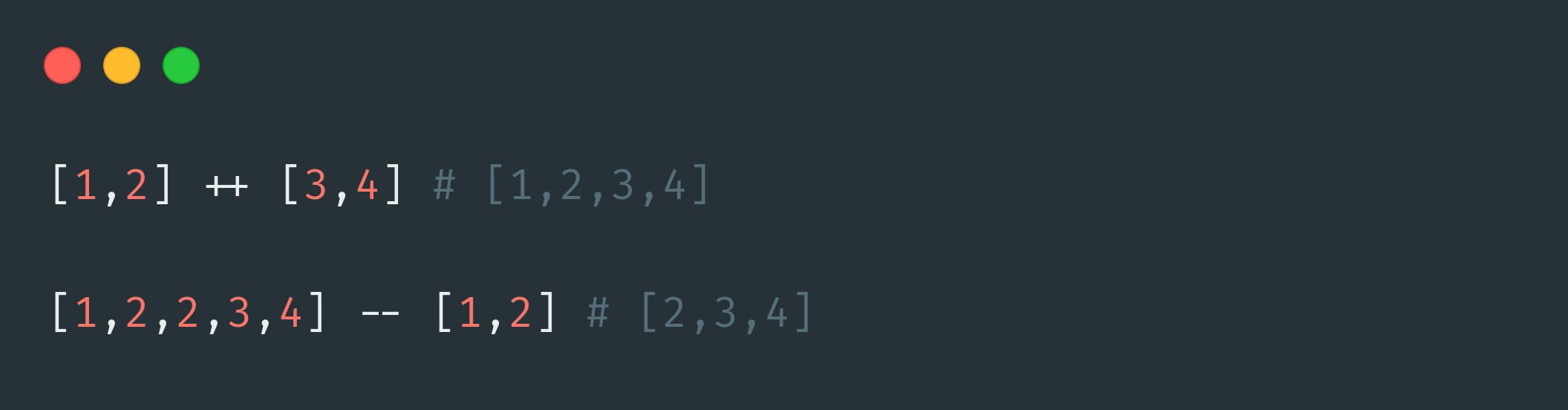 Solo te mostraré dos operadores que me parecen increíbles para concatenar y eliminar elementos de listas.