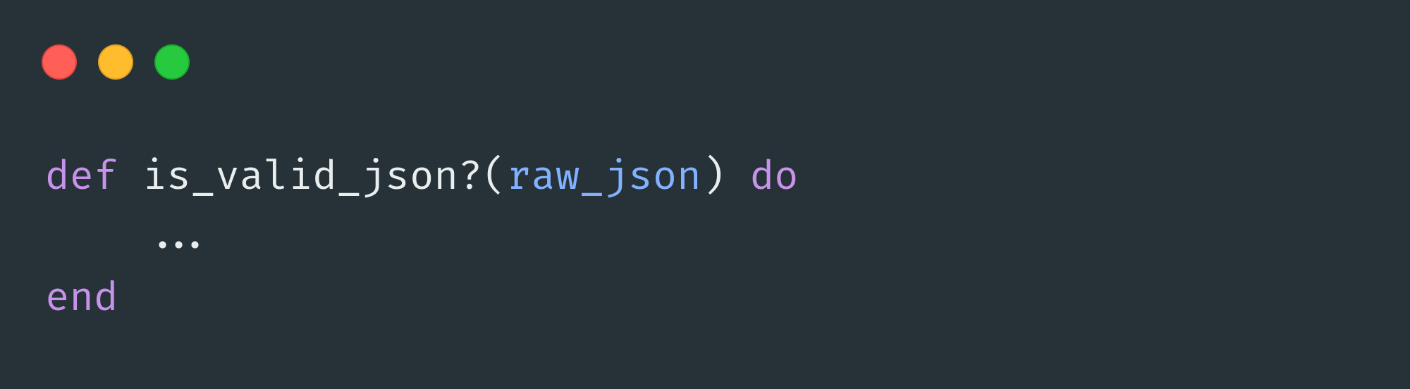 Y el detalle de que si una función devuelve un booleano, se puede añadir un ? al final de la función para hacerla más expresiva.