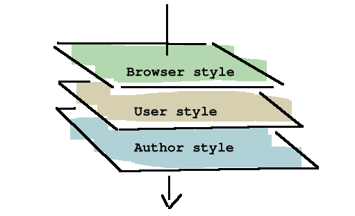 Imagina que uno de los estilos que el navegador aplica por defecto hace que todos párrafos (<p>) sean de color negro.