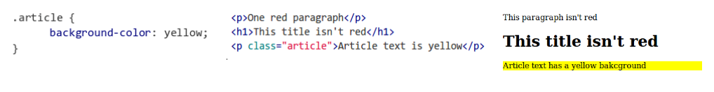 Y solo los elementos con class=”article” tendrán el fondo de color amarillo: