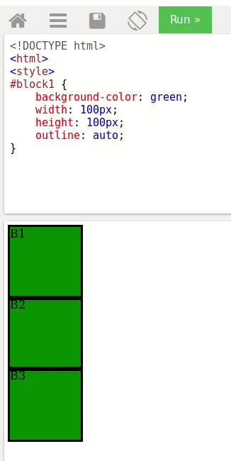- block: el elemento se comporta como un elemento block-level. Ocupa todo el ancho de la fila, por lo que no podremos poner ningún elemento al lado suya (sí encima o debajo).