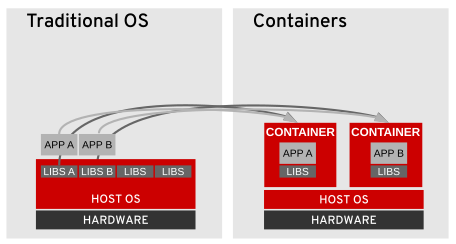 Si otra aplicación comparte el mismo SO host y el mismo conjunto de librerías, existe un riesgo de interrupción si una actualización que repara las librerías de la primera aplicación afecta a la segunda aplicación. Además, una actualización en general requiere la parada completa de la aplicación. Normalmente, esto implica un entorno con características de alta disponibilidad, habilitadas para minimizar el impacto de un tiempo de inactividad, y aumenta la complejidad del proceso de implementación.