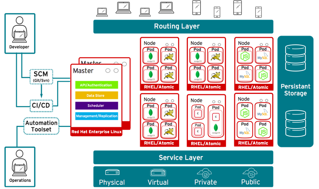 En el siguiente diagrama se muestra la arquitectura típica de una instalación de OpenShift:
