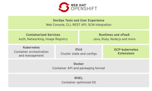 Si nos fijamos en su stack de software, OCP es un conjunto de componentes y servicios modulares desarrollados sobre la base de Red Hat Enterprise Linux y Docker. Además, agrega capacidades de PaaS, como administración remota, multitenancy (multiinquilino), mayor seguridad, administración del ciclo de vida de la aplicación e interfaces de autoservicio para desarrolladores.