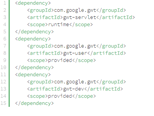 Para asegurar que todas las dependencias tienen la misma versión, también necesitamos incluir la dependencia padre de GWT: